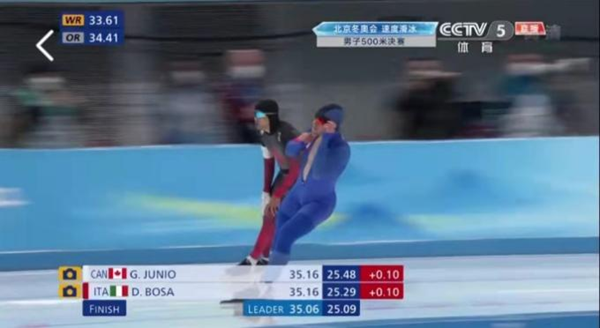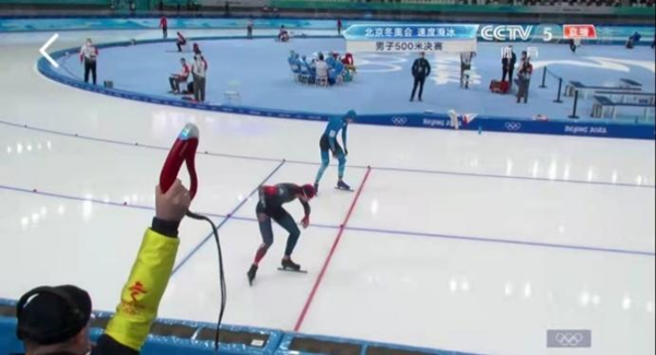 來,直接上圖。圖為2月12日男子500米速滑決賽(截圖來自央視頻)。