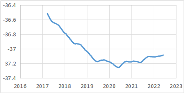 圖3:2017-2022年間UTC-TAI的變化趨勢