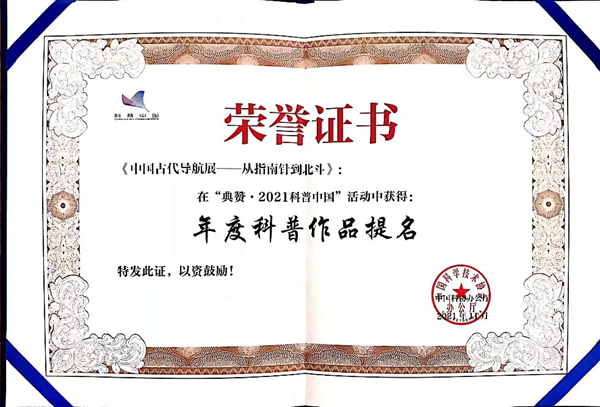 《中國古代導(dǎo)航展——從指南針到北斗》榮譽(yù)證書