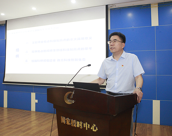 ????在主題黨課報告會上,張首剛作題為《加強科研誠信,搶占科技制高點》的黨課報告。報告深刻闡述了搶占科技制高點的重大戰(zhàn)略意義,加快搶占時間頻率領域科技制高點的思考,加強科研誠信建設、改善科技創(chuàng)新生態(tài)三個方面的內(nèi)容,重點回顧了習近平總書記在“科技三會”上的重要講話精神,還結(jié)合學術不端典型案例,對全所科研人員進行科研誠信提醒并提出具體要求。