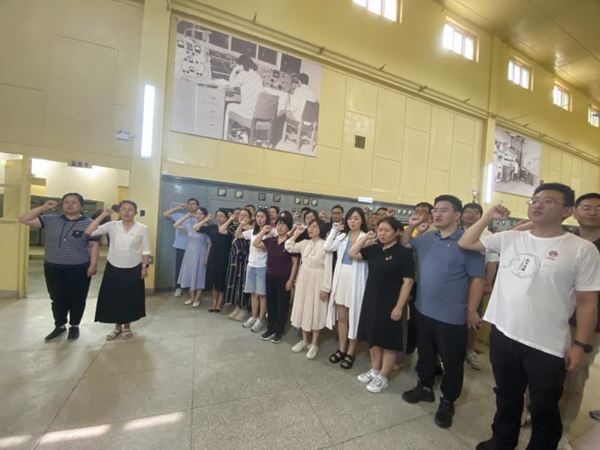 活動(dòng)中,全所職工和研究生參觀了位于蒲城金幟山上的短波授時(shí)臺(tái)舊址和時(shí)間博物館,全體黨員在發(fā)射大廳的黨旗下莊嚴(yán)宣誓;隨后觀看授時(shí)部離退休老黨員尹德龍弘揚(yáng)“326”精神的視頻報(bào)告,并參觀“堅(jiān)守使命 為國(guó)授時(shí)”科學(xué)家精神教育基地。大家身臨其境感受老一輩授時(shí)人曾經(jīng)工作過生活過的地方,認(rèn)真聆聽講解員講解時(shí)間的產(chǎn)生、發(fā)播和應(yīng)用,以及長(zhǎng)短波授時(shí)臺(tái)建設(shè)運(yùn)行中的動(dòng)人故事,一張張珍貴的照片,一封封泛黃的文件,把大家?guī)氲侥莻€(gè)激情燃燒的年代。